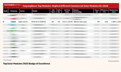 Risen Energy Co., Ltd / Schlagwort(e): Miscellaneous Weltweit unter den Top 3 in Sachen Umwandlungseffizienz! Risen Energy HJT ist führend in der neuen Ära der Weltraumenergie 24.01.2026 / 00:45 CET/CEST Für den Inhalt der Mitteilung ist der Emittent / Herausgeber verantwortlich. NINGBO, China, 24. Januar 2026 /PRNewswire/ — Kürzlich veröffentlichte die globale PV-Behörde TaiyangNews ihre erste Liste mit TOP-SOLARMODULEN 2026. Die Hyper-ion Pro HJT-Module von Risen Energy sicherten sich einen Platz unter den drei weltweit besten Modulen, unterstützt durch eine Serienleistung von 740 Wp und einen Umwandlungswirkungsgrad von 23,8 %. ![]() Die Liste der TOP-SOLARMODULE konzentriert sich auf kommerziell hergestellte PV-Module aus der Massenproduktion und stellt systematisch ihre wichtigsten Leistungen vor. Nach strengen Aufnahmekriterien werden nur Produkte zugelassen, die bereits in Massenproduktion hergestellt wurden, über vollständige technische Daten verfügen und eine Umwandlungseffizienz von ≥21,5 % aufweisen, sodass die Ergebnisse einen hohen Referenzwert und eine hohe Glaubwürdigkeit in der Branche haben. In den HJT Hyper-ion Pro-Modulen von Risen Energy sind Kerntechnologien integriert, darunter die OBB-Zelltechnologie, die stressfreie Hyper-link-Verbindungstechnologie und die ultradünne Zelltechnologie, die sowohl die Leistung als auch die Kosteneffizienz deutlich verbessern. Mit einer extrem hohen Bifacialität von 90 % ± 5 % und einem äußerst niedrigen Temperaturkoeffizienten von -0,24 %/°C bieten die Module in verschiedenen Anwendungsszenarien eine konstant hohe Leistung. Bis Ende 2025 wurden insgesamt mehr als 12 GW an HJT-Produkten der Hyper-ion-Serie ausgeliefert und in über 80 Länder und Regionen weltweit exportiert. Risen Energy hat sich proaktiv in die Weltraumwirtschaft vorgewagt und seine selbst entwickelten ultradünnen p-Typ-HJT-Zellen mit einer Größe von 50 μm in Serie geliefert. Diese Zellen, die sich durch ihr geringes Gewicht und ihre Strahlungsbeständigkeit auszeichnen, sind perfekt mit flexiblen Solaranlagen kompatibel. Die von Risen Energy entwickelte Perowskit-Silizium-HJT-Tandemsolarzelle hat einen Umwandlungswirkungsgrad von 30,99 % erreicht, was einen großen Spielraum für die Weiterentwicklung der Effizienz in der künftigen Weltraum-Photovoltaik eröffnet. Von bodengestützten Kraftwerken bis hin zum weiten Sternenhimmel – Risen Energy definiert durch Innovation die Grenzen der Energie neu. Damit wird nicht nur die PV-Technologie weiterentwickelt, sondern auch eine solide wissenschaftliche Grundlage für den Aufstieg der menschlichen Zivilisation in das interstellare Energiezeitalter geschaffen. Foto – https://mma.prnewswire.com/media/2867861/111.jpg